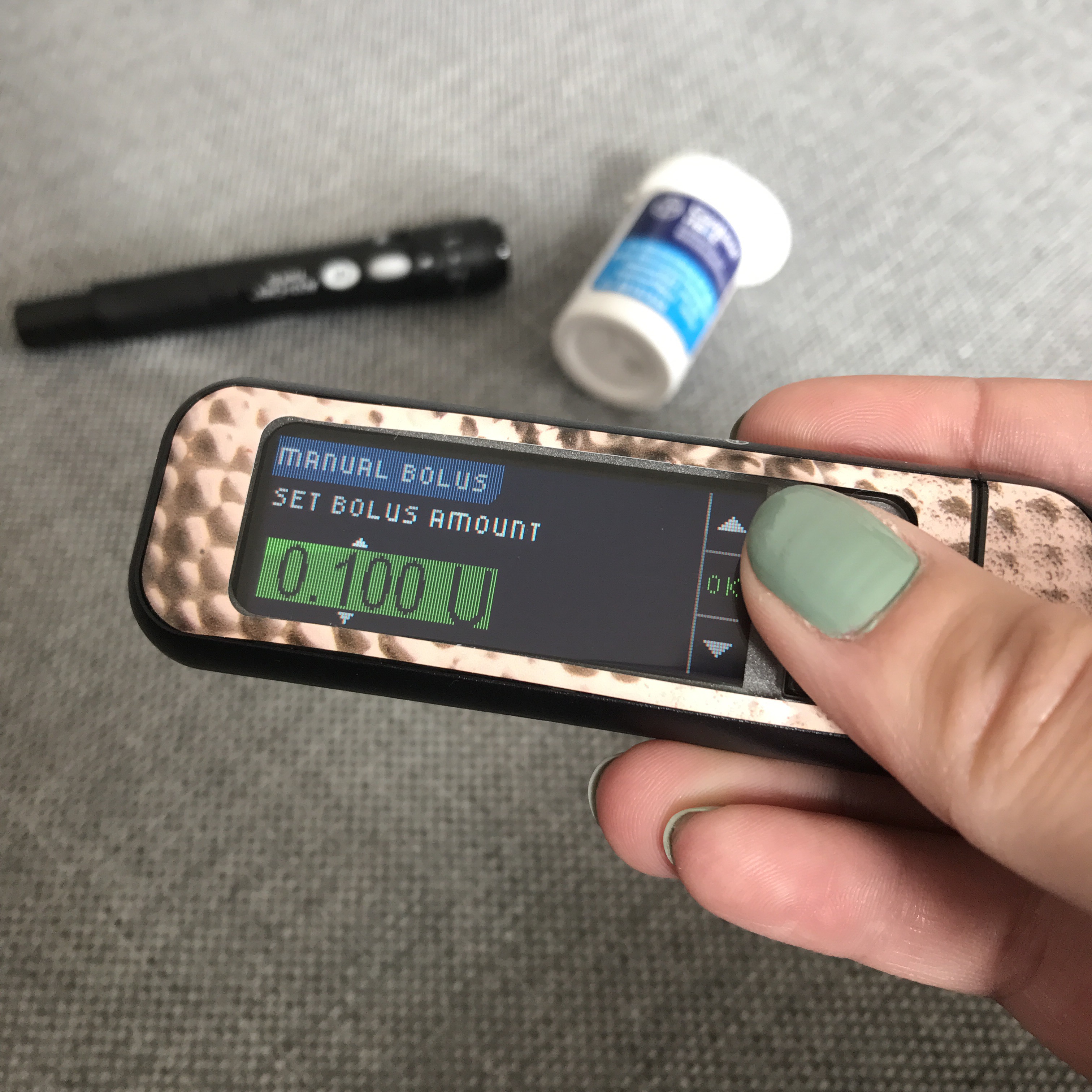 The only drawback is that it is not programmed to know your correction scale or carb ratios, so you’ll need to bolus blindly. It’s a manual bolus-so to speak.