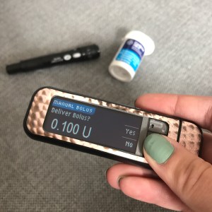 If you wear an insulin pump, one with tubing, you’ve probably had experiences where it wasn’t convenient to whip out your pump and bolus. A great example is if you’re wearing a dress and it’s clipped on your hip or between the girls. No matter how free and open you are with your diabetes, no one wants to put their hand down their shirt at the dinner table.